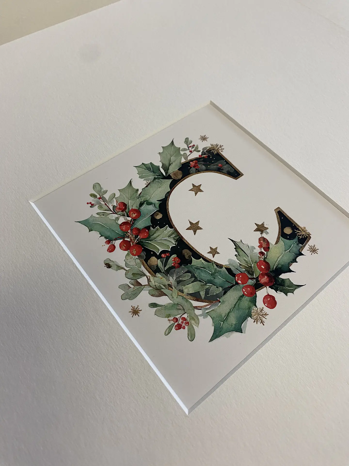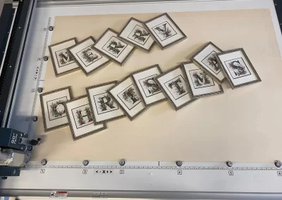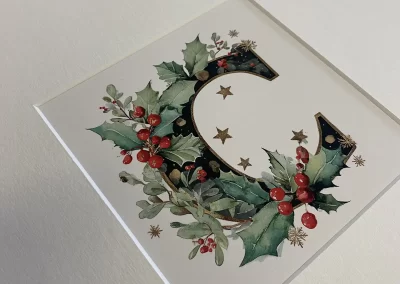 For this project, we have created double photo mountboards, ideal for holding small festive images or, as in our example, the letters forming the phrase “Merry Christmas”.