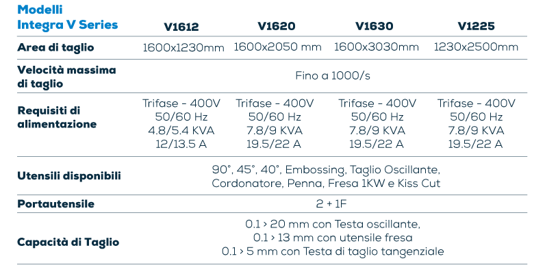 Integra V Series è la soluzione perfetta per chi cerca un sistema di taglio all’avanguardia nel settore sign e packaging, con prestazioni elevate e un livello di automazione superiore. Scegli la precisione e l’affidabilità di un prodotto 100% italiano, progettato per rispondere alle esigenze delle industrie moderne.