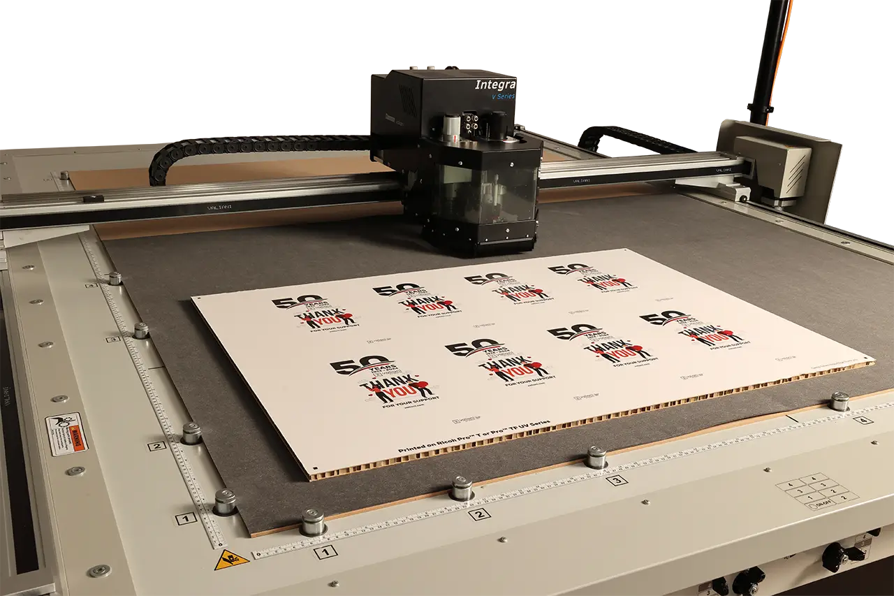 Integra V Series è il sistema di taglio progettato per lavorare materiali rigidi e ad alta consistenza, ideali per il settore della segnaletica e del packaging. Grazie alla configurazione con fresa da 1KW e una gamma completa di utensili da taglio, Integra assicura massima versatilità e un’elevata qualità nelle lavorazioni sui materiali più diffusi nell’industria grafica.